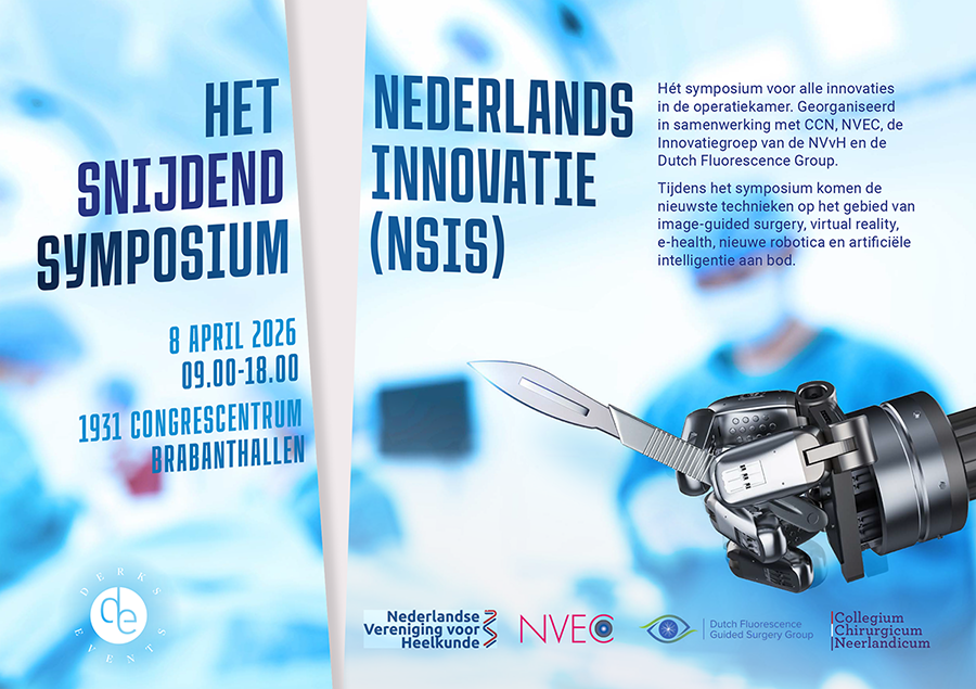 Wij nodigen u van harte uit deel te nemen aan hét symposium voor alle innovaties in de operatiekamer. Georganiseerd in samenwerking met CCN, NVEC, de Innovatiegroep van de NVvH en de Dutch Fluorescence Guided Surgery Group. Tijdens het symposium komen de nieuwste technieken op het gebied van image-guided surgery, virtual reality, e-health, nieuwe robotica en artificiële intelligentie aan bod.